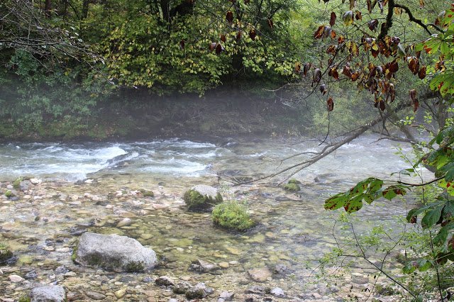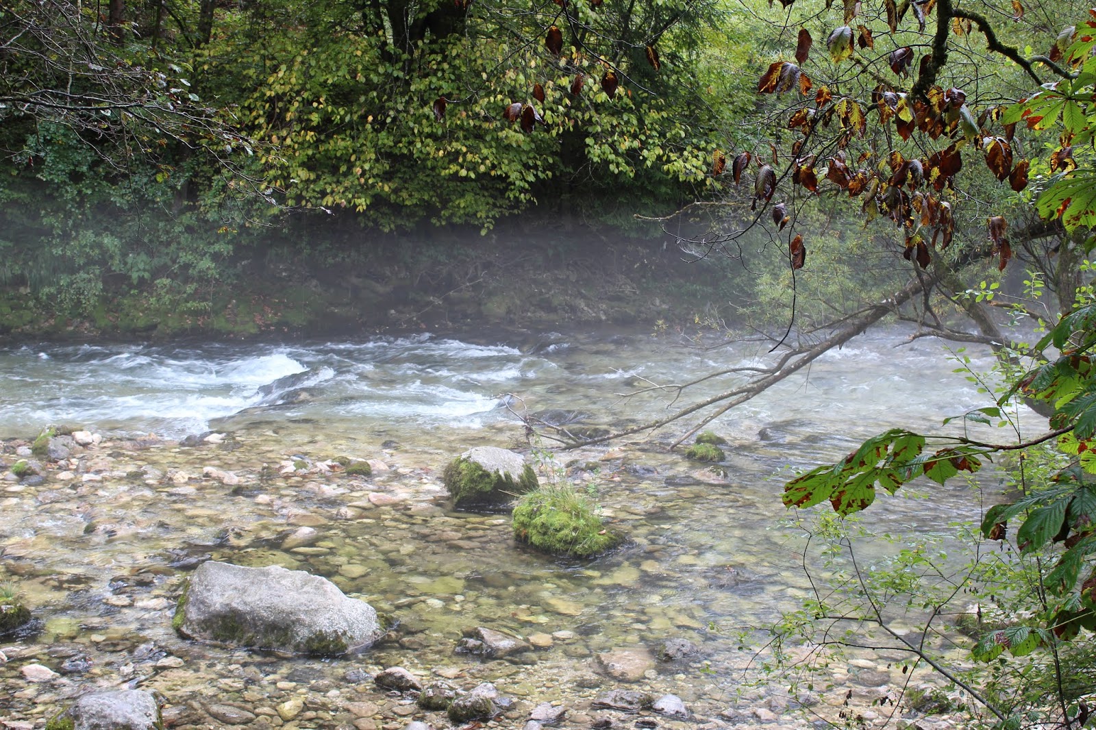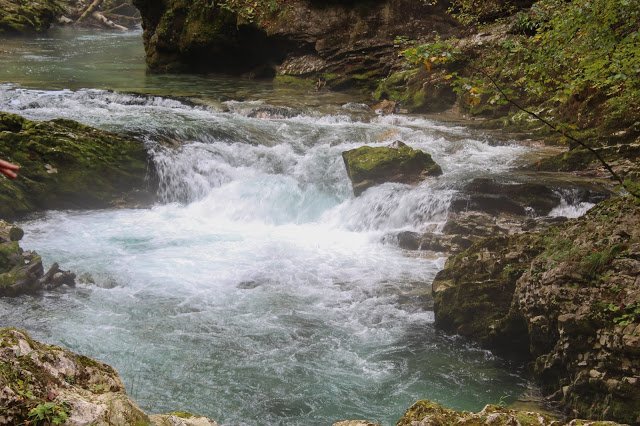Először a Vintgar szurdokba mentünk, mert akkorra már kezdett javulni az idő. Akkor még viszonylag kevesen voltak, így nem volt túl nagy a “szembeforgalom” a természetben.