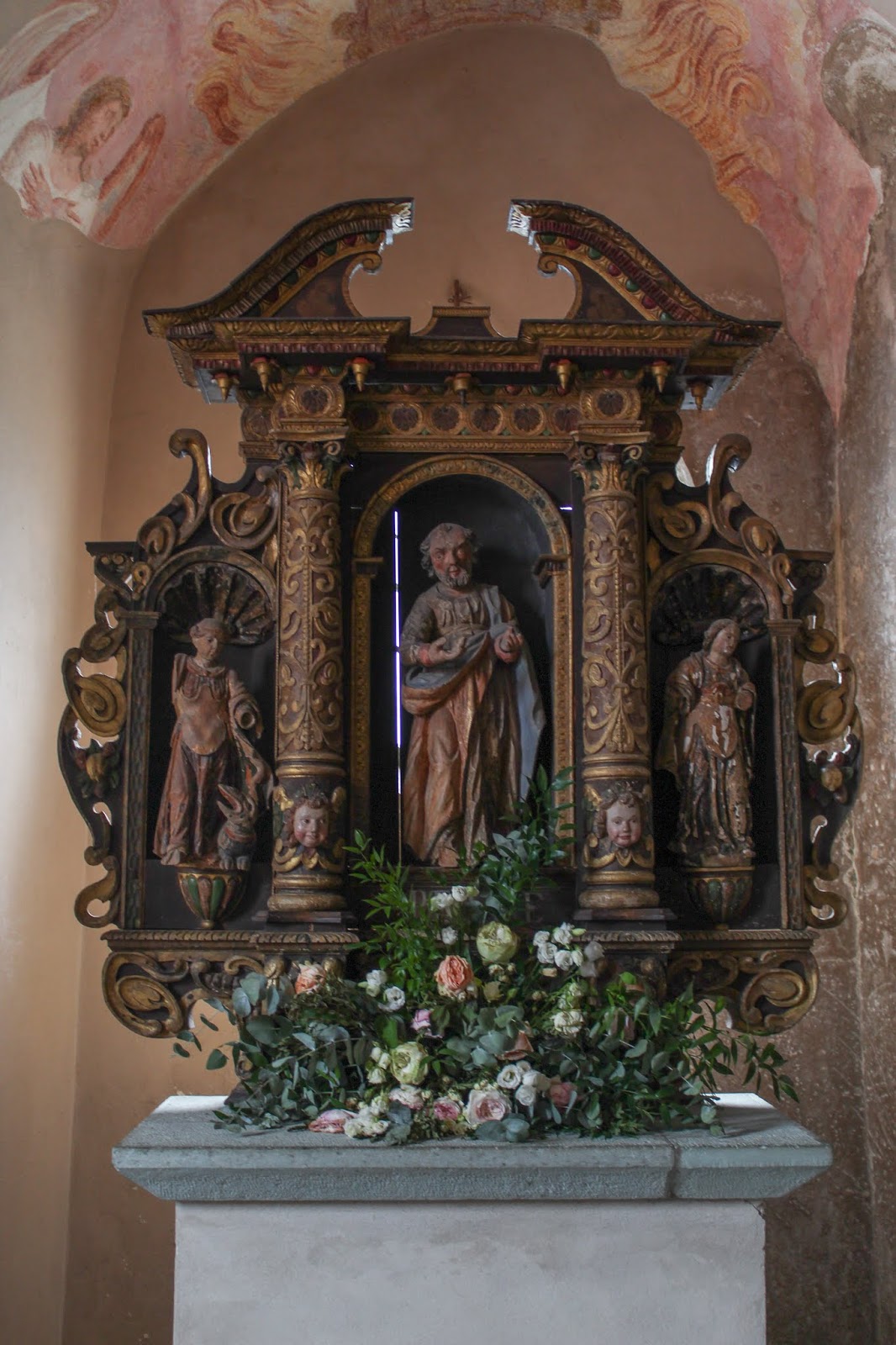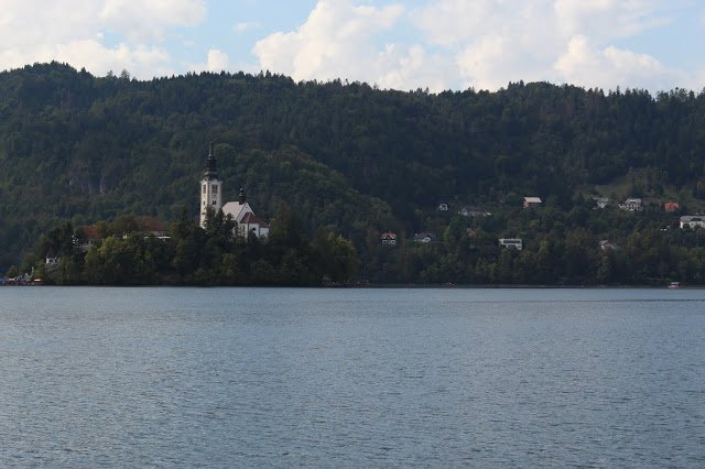 A vár meglátogatása után felkerekedtünk, hogy megnézzük a tó közepén lévő Mária mennybemenetele templomot. A szigetre pletnával lehet eljutni, nagyjából 10 perc alatt. Mivel a tavon motoros járművek nem közlekednek, nagyon hangulatos, csendes, a látványról nem is beszélve. Ott 40 percünk volt mindent megnézni. A A templomról kívülről sajnos nem tudtam használható képet csinálni, így csak a belsejét tudom nektek megmutatni.