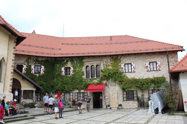 Ezután meglátogattuk a Bledi várat, amely a tó partján, 100 méter magasan helyezkedik el. A vár története 1004-ig nyúlik vissza, akkor még csupán egy torony állt falakkal körülvéve. Az első várépület 1011-ben épült fel, de elsősorban védelemre volt kiépítve. Az 1511-es földrengésben súlyosan megrongálódott az épület, majd az újjáépítés után nyerte el ma is ismert formáját.